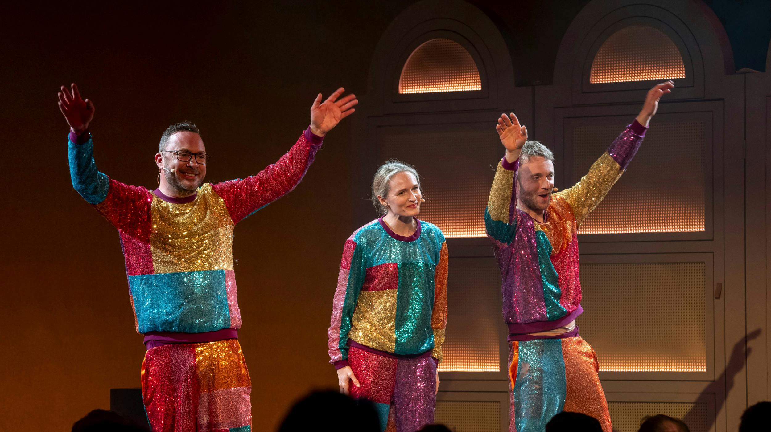 Og da SE og HØR efter forestillingen mødte Mille Hoffmeyer Lehfeldt, 44, Laus Høybye, 45, og Jakob Fauerby, 46, på scenen, lyste glæden over en veloverstået repremiere ud af trioen.