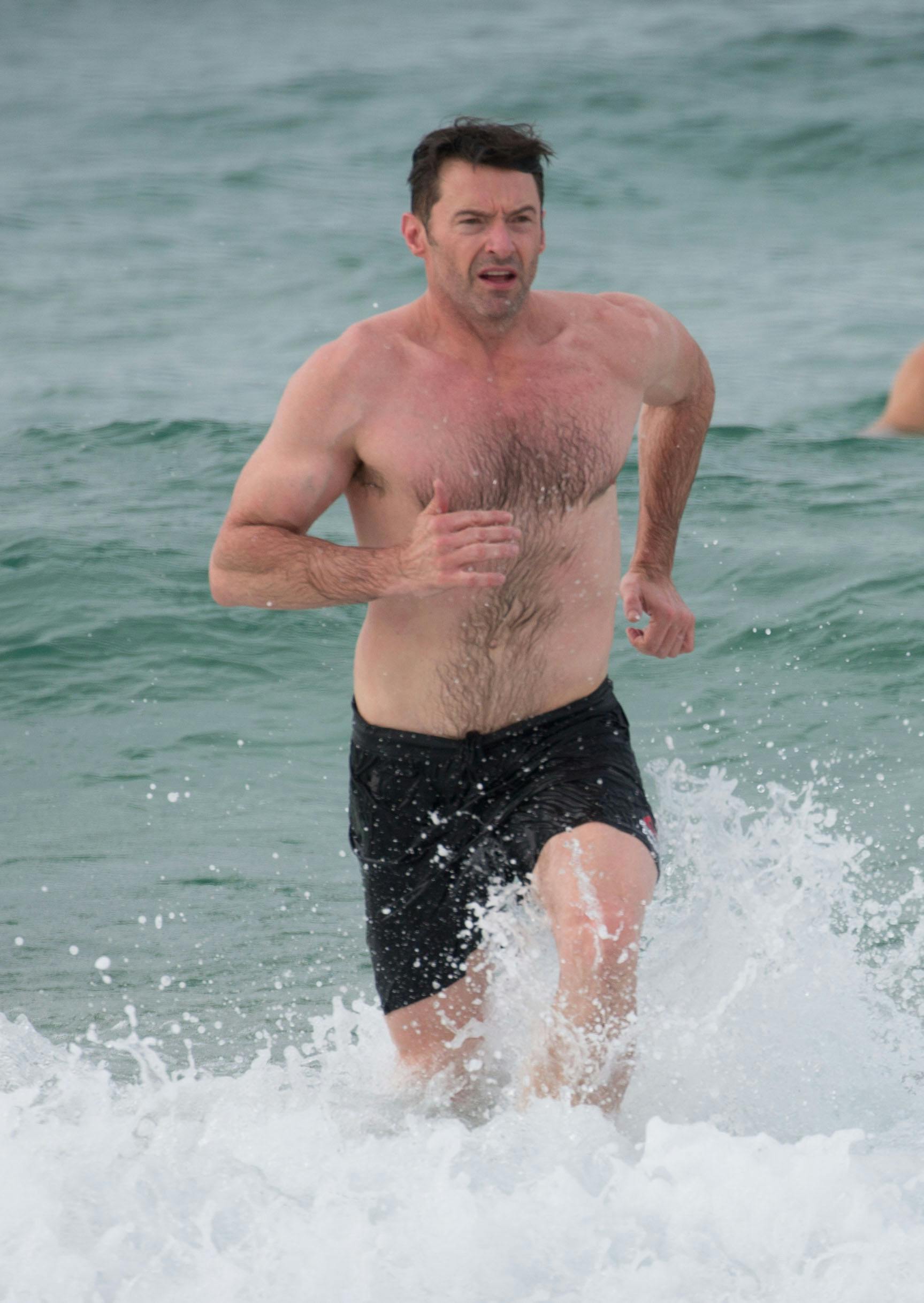 Se billederne: Hotte Hugh Jackman på stranden