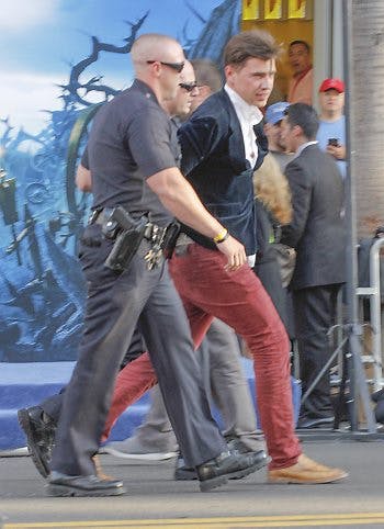 Leonard Calderon fra politiet i Los Angeles fortæller til CNN, at en mand sprang over en afspærring uden for El Capitan Theatre og gik til angreb på skuespilleren.