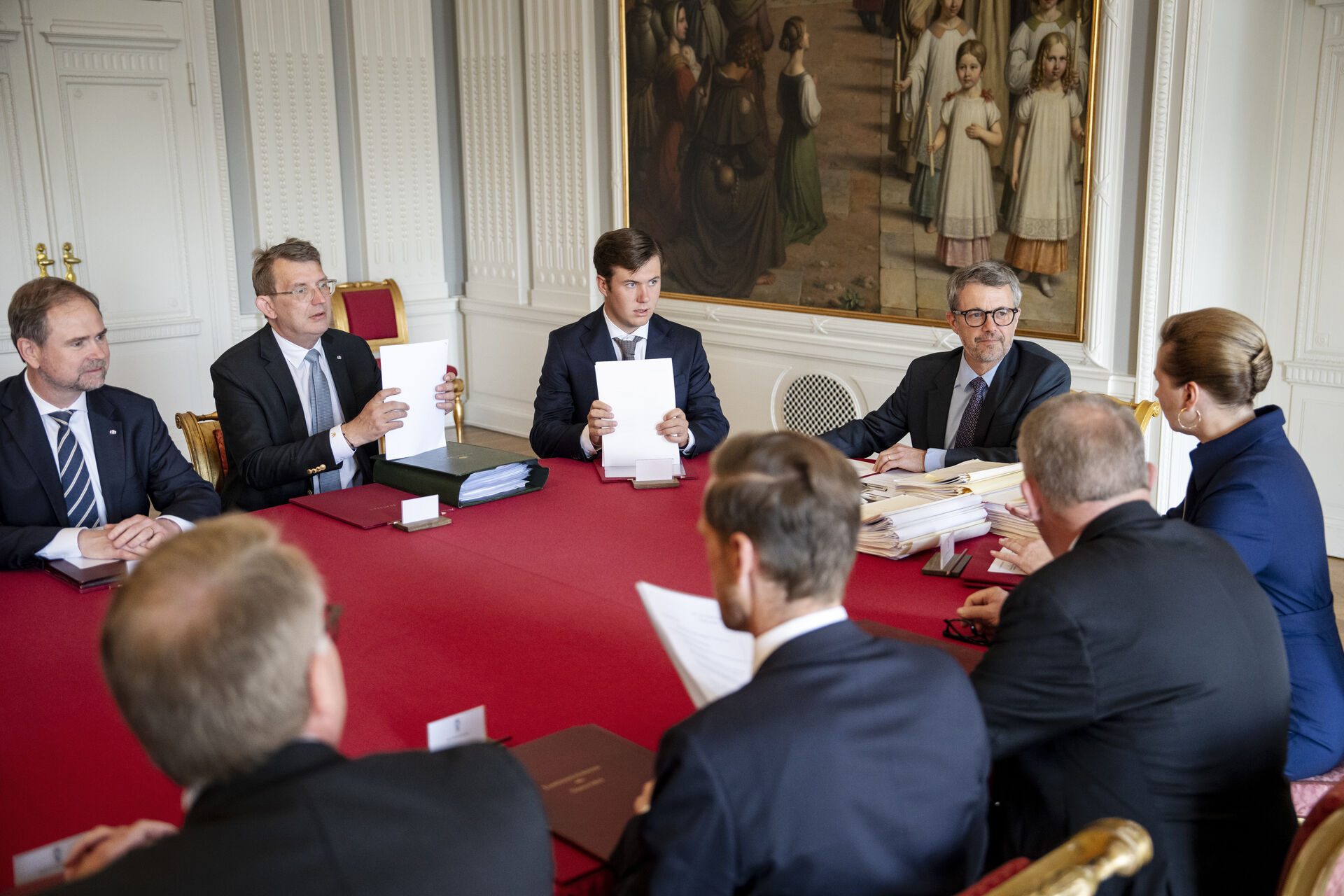 Her sad 19-årige Christian til bords med samtlige ministre fra Folketinget samt sin far, kong Frederik.