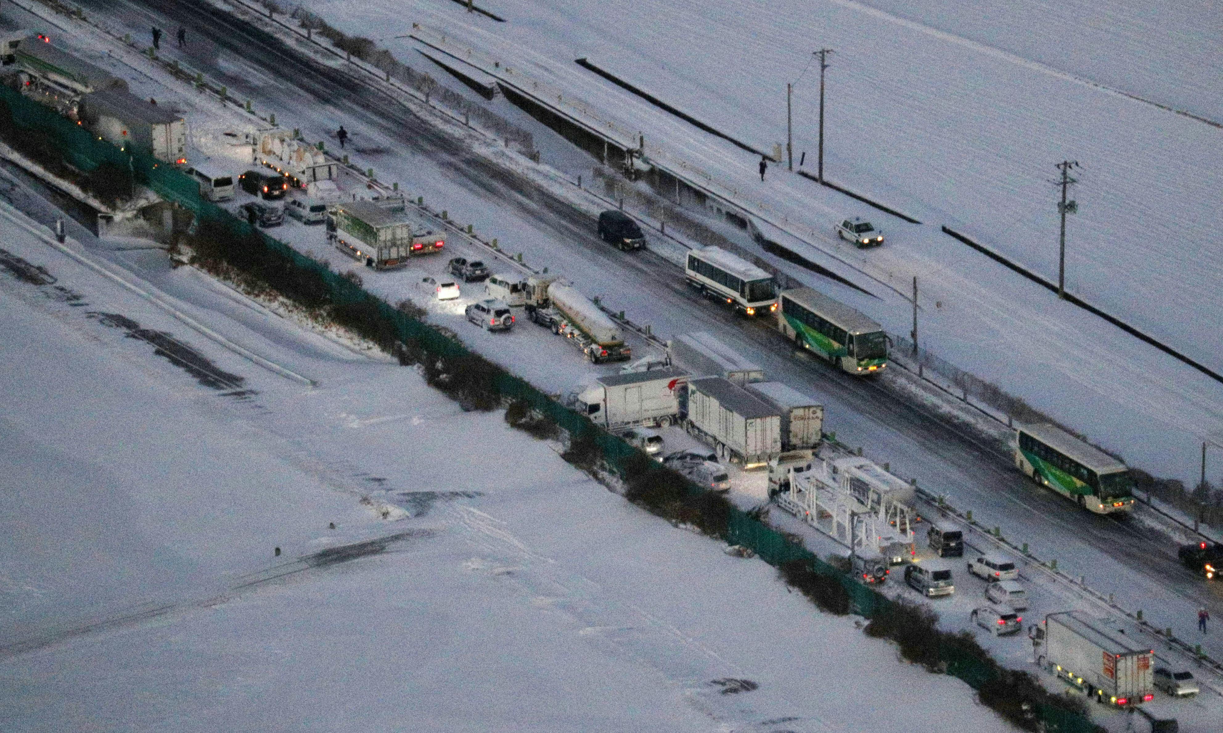 Mindst 134 biler har været involveret i en lang række af ulykker på en motorvej i Japan tirsdag.